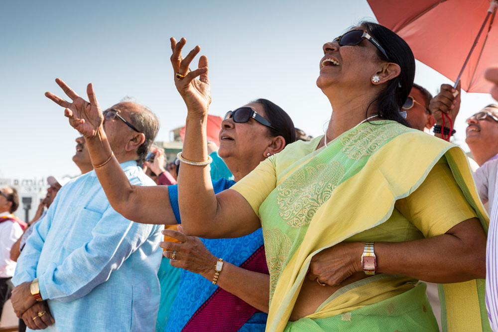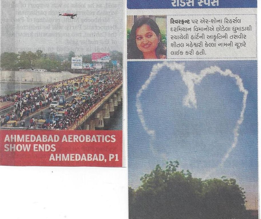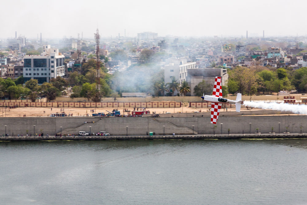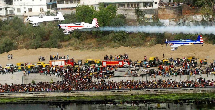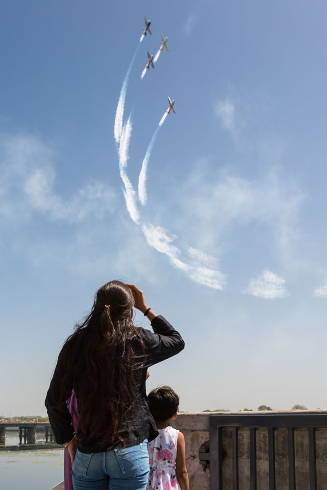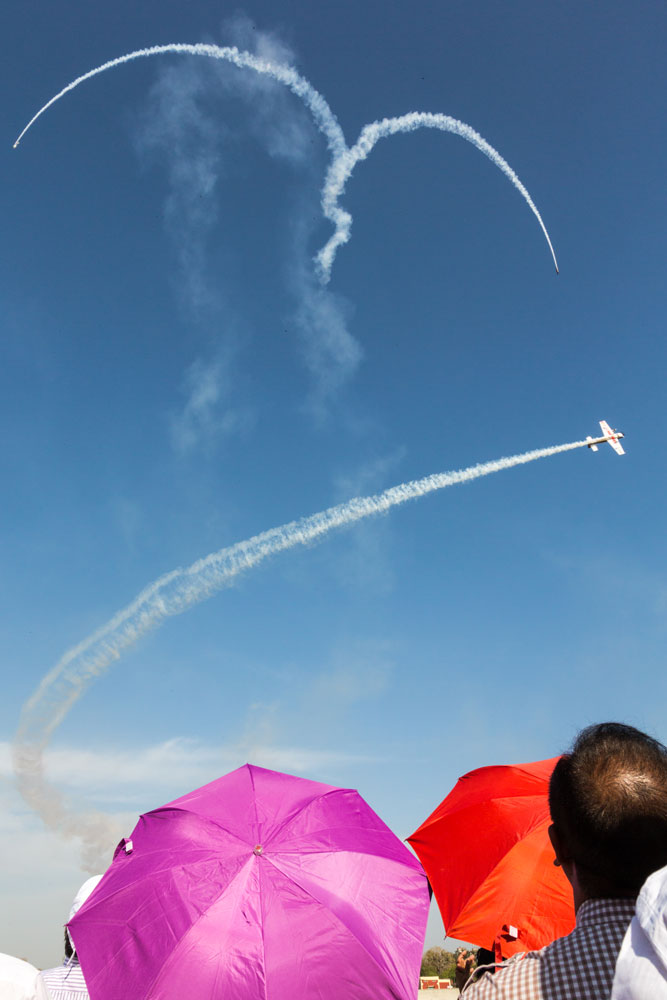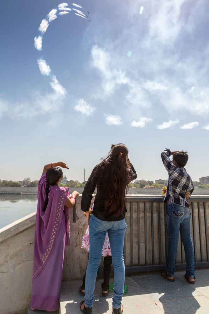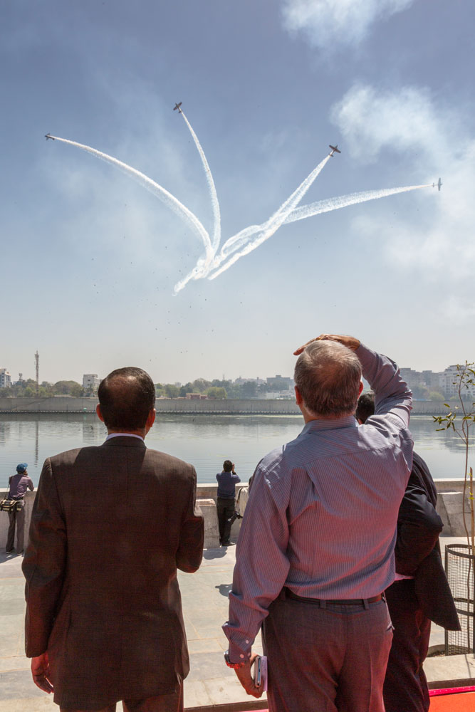 The show is officially opened 30 seconds before we tip in at precisely 16:20. The ATC at Sardar Vallabhbhai Patel International Airport do a sterling job of calling the opps desk of all inbound airlines in the preceding there flights to make sure they arrive early and on the ground buy 16:10 thus allowing us to take the airspace for 10nm and 4,000ft around the airport. 16:10, taxi, 16:15 cleared for take-off, 16:20 tip in, everything goes to plan. In the afternoons its just a bit more bumpy but the formation manages to take this in its stride. 4;30 formation the a break to fly the big heart, 4;30 solo by myself then we join up again for a further 4:10 formation and then low flypasts. The crowds went wild, with many email congratulations and twitters (@airdisplays). The team head out to the cultural evening ASAP.
