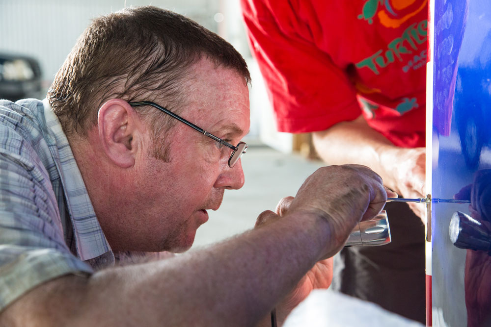 He beats us to the hangar. Fineley at 14:30 we get airside after the newly issued passes are checked 6 times approximately every 20 – 30 paces. Big congrats to Tom and pats on the back. We start work removing a/c from the containers. Both Chris and I discover some haft wit has stood on the wheel spat and damaged mine. apart from that all is OK. Tonight last thing we get all 3 wings in place and then pack up shop for the evening.