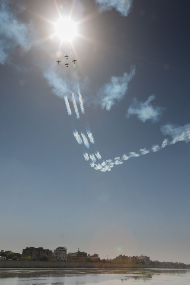 All a/c were left fueled and ready for this mornings 11AM flight. We saddle up in the blazing sun with temps about 37 engines start and wait and wait, several airlines are late delaying our departure. A few locals also expected to fly in the NOTAM’ed black out period. We fly a sequence practice in the overhead before setting of to the venue for a couple of teaser figures.