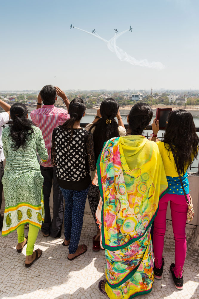 Skies dawn blue, temps nice 28c, relaxing leasurly breakfast then of to the airport. File the flight plan and we are all set. Takeoff on slot at 11AM, direct to the venue and tip in. We flew a nice show which went to plan with exception of a faff on a smoke call. The afternoon practice flight at the airport was for a few local children who had the privilege of watching and visiting us after the flight. As is very traditional lots of picture requests which as always we obliged. Planes put away and Tom and I go for the following days display briefing for the VIP day. Very strict on timings as the Chief Minister, Anandiben Patel will be opening the show precicely as we tip in.