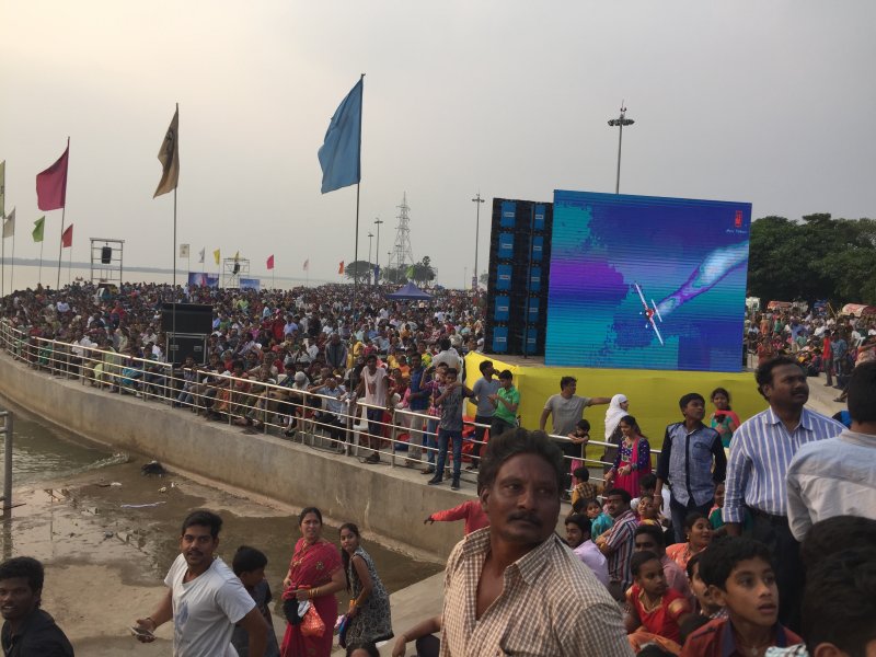 12th January. One finaly dress rehersal of the full show in the morning then its hurry up and wait till 16:30 (bit like UK shows….) Its reported the town was jammed for hours as people went to the venue. This is the opening show for the VIP deligates. We send Chris Heames to brief commentry. We arrive overhead to a raptous roar of approval from the crowd. Tipping on on the new “revsied time”. The 15 mins show bought whoops of joy and cheers. The Chief minister also enjoyed and has expressed interest at seeing us again.