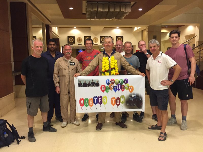 Today is Tom cassells birthday so we arrange for the “spice girls” to sing happy birthday for him (SpiceJet hostesses) then in the evening we present a banner and garlands of flowers. Tommy was very touched.