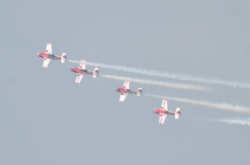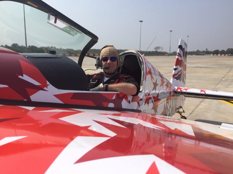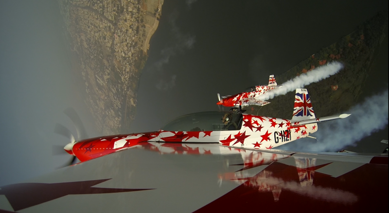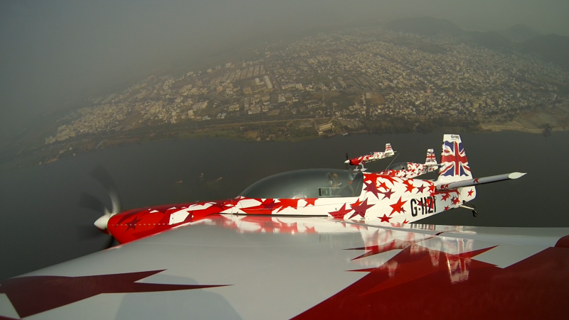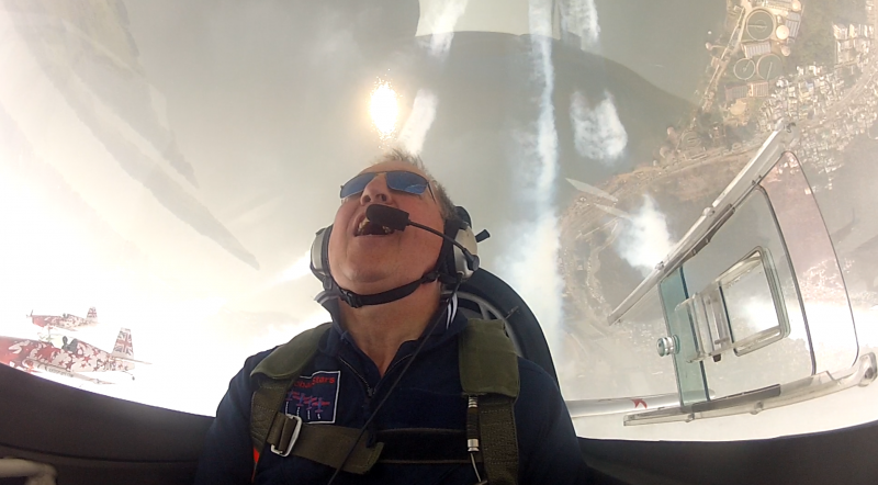 10th January. oh dear, we are a pilot down today. Steve Carver spent the night on the toilet. So, plan B came into play one of my reserve pilots bought along specifically for this eventuality being slotted in. Chris Heames, 12,500 hours TT and formation instructor pilot. He’s flying left wing in my Extra 330SC and I take Steves Extra 260 into box.