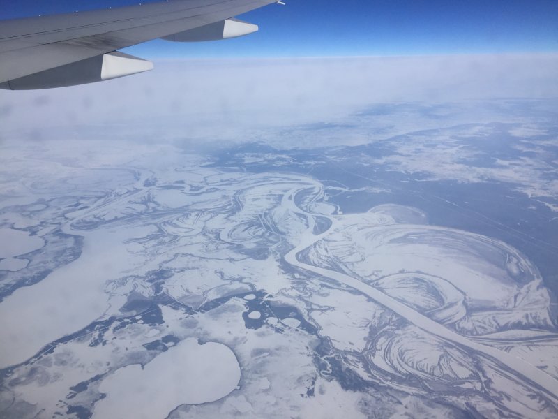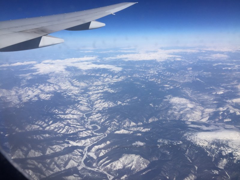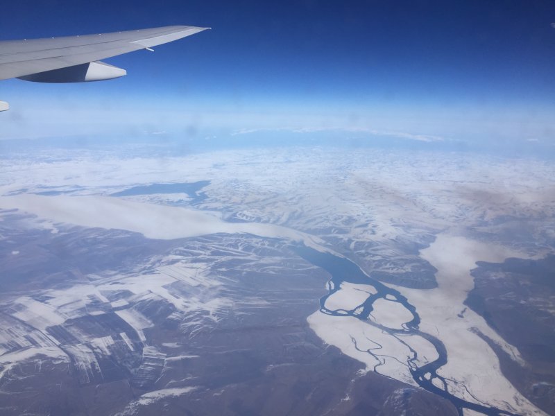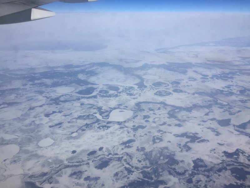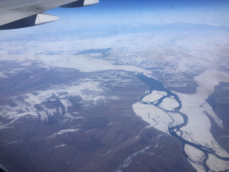 On the way back to the UK I had a window seat and took a few pictures, the first hour was desert, just yellow. Then clouds. When the clouds cleared a frozen waste land appeared.