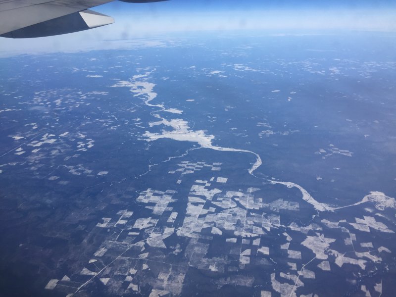 The meandering rivers, occasional oil production areas all interspersed with straight roads.