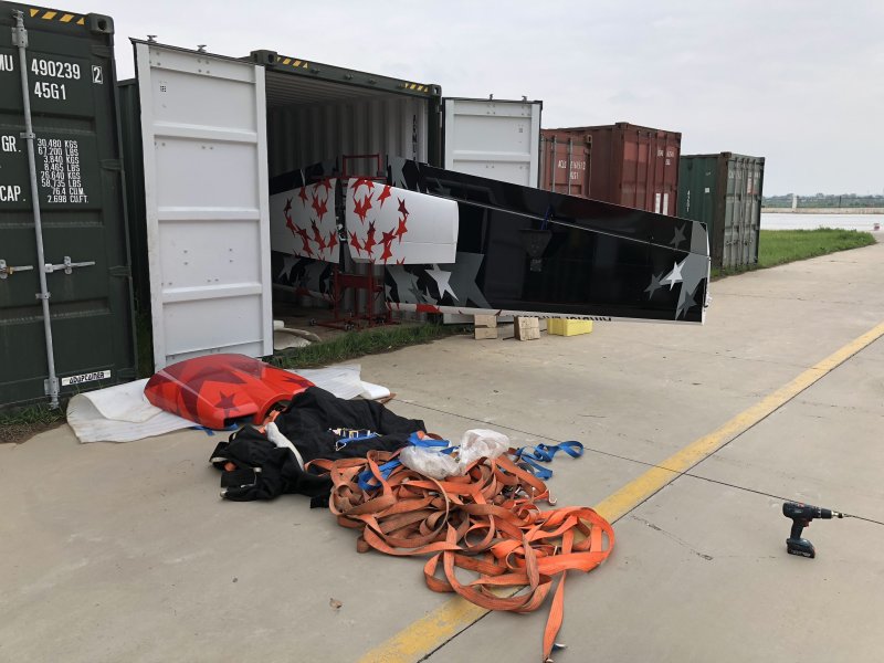 22nd April. Being fair to the team I suggest bus at 10am for the a/p, no resistance was meet 🙂 Containers opened by 10:30 to find all strapping as tight as the day it departed UK. All aircraft and tooling unloaded to commence build. This goes very well. We stop work at 13:00 for a well-earned break, pizza was supplied. Very nice for the team but I can’t eat wheat product so have a chinese.