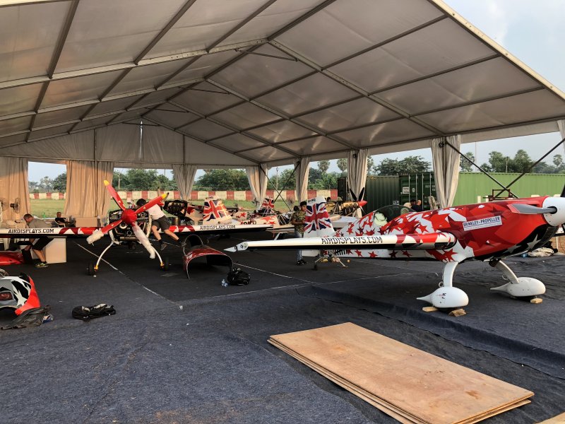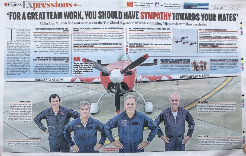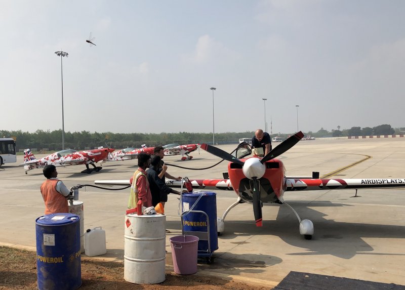 The Global Stars have done 2 shows in 2 countries back to back. Bahrain (BIAS) 14-17th November and Vijayawada 23-25th November. 7 display days, 2 press days, 2 travel days leaving 4 days to build, practice and repack 7 aircraft in containers. Very demanding to say the least!