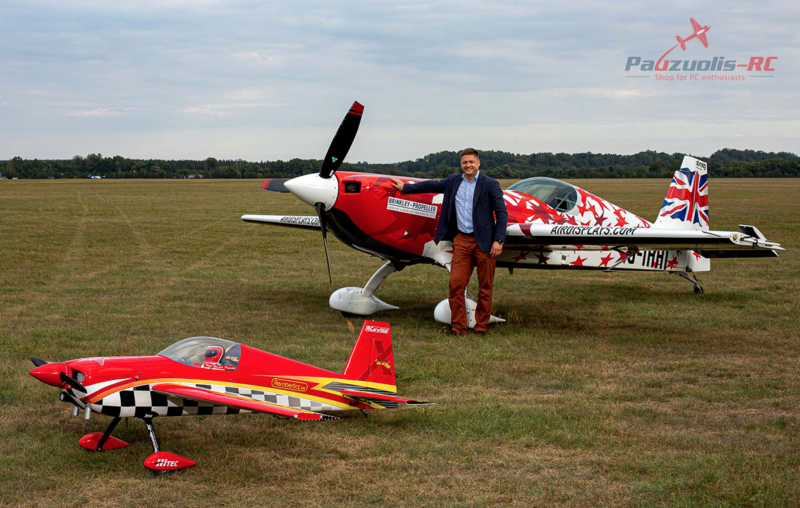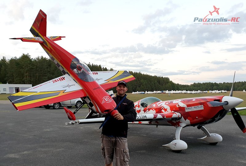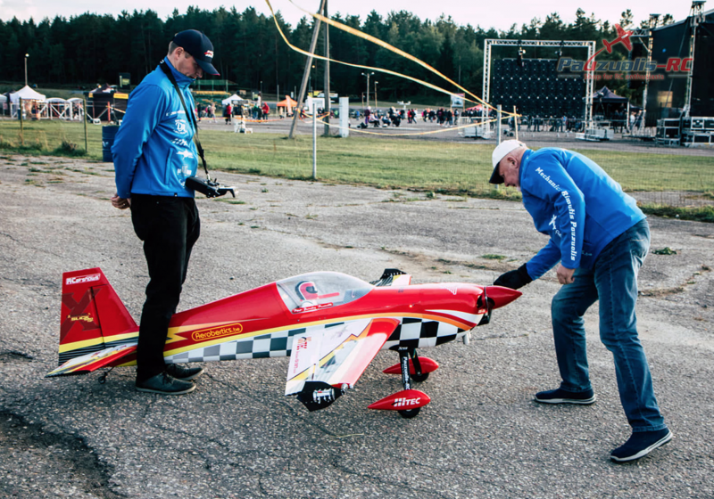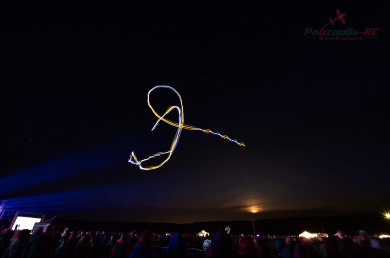 Latter during the summer we hosted technical camp for kids: “Kids go Tech”. Again It was a really successful event with positive feedback from parents and kids who participated in the camp. We had a desire to finish this interesting year with a Grand Show. An idea to make festival of lights ” Lights on ” and to connect it with aviation was born. We wanted to make a show that have never been made in Lithuania before. My good friend from LAK glider factory Mr. Vytas Maciulis offered his support in reaching out to Mr. Mark Jefferies. We started communicating via email and the idea to make “Little and Large” show was born. For the very first time Full scale Extra and 35% radio controlled model performed in the Lithuania’s sky.