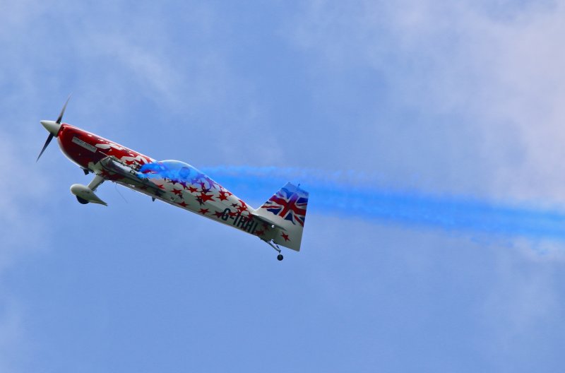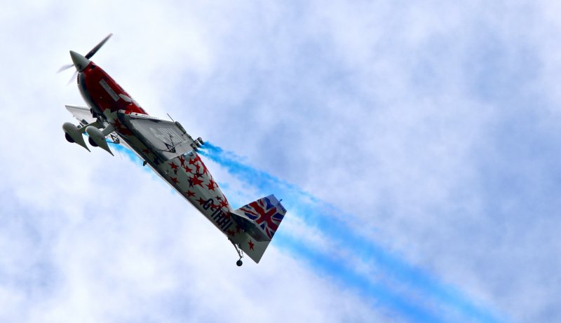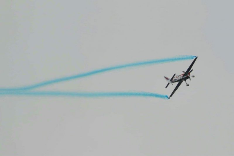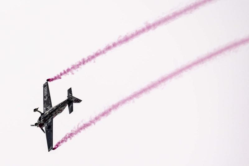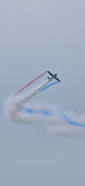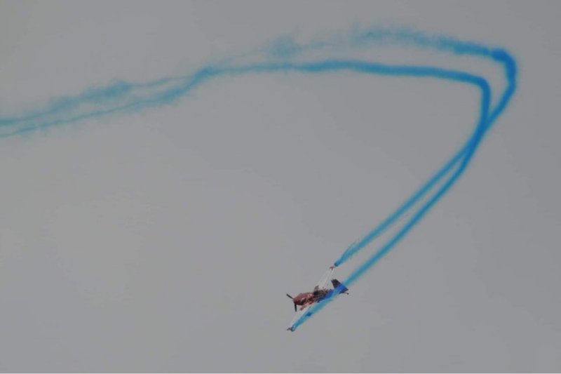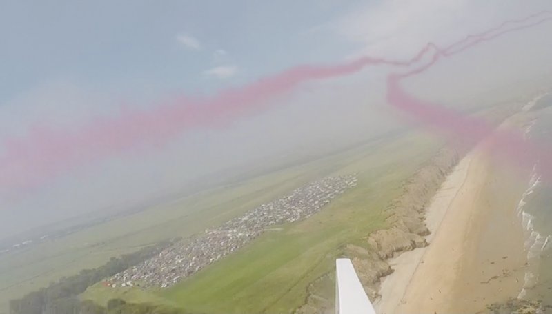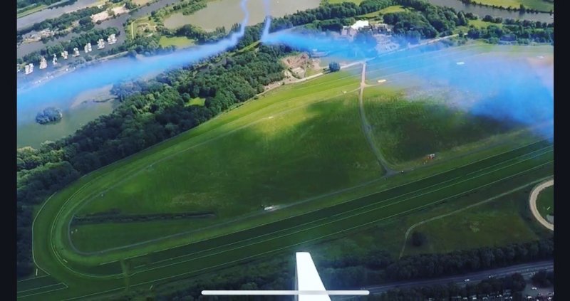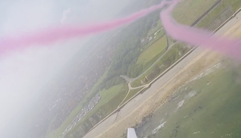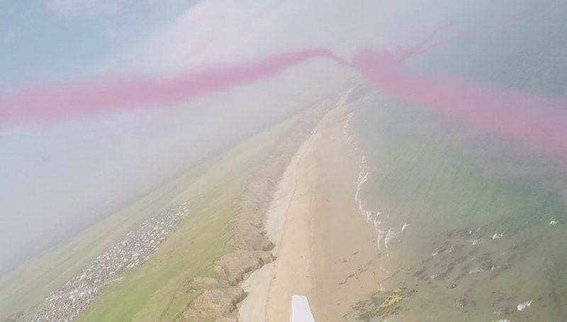 Then the reveal happens as the plane draws the arrow with either pink or blue smoke.