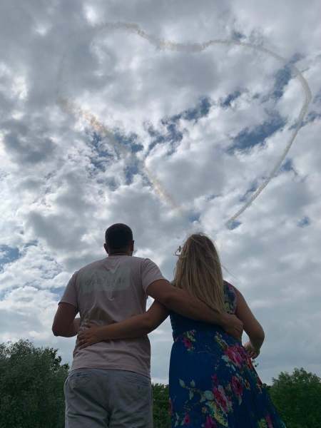 At 10,000 ft, thats nearly 2 miles high, (subject to air traffic control) a plane that you can hardly see and not hear starts to draw a massive heart in the sky.