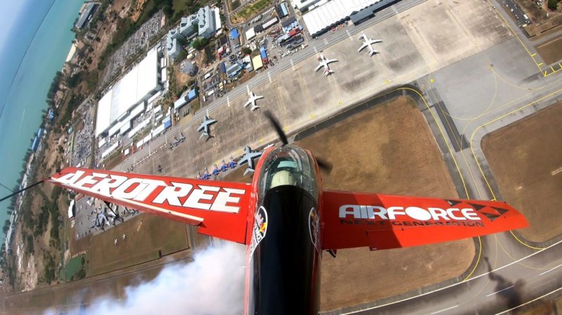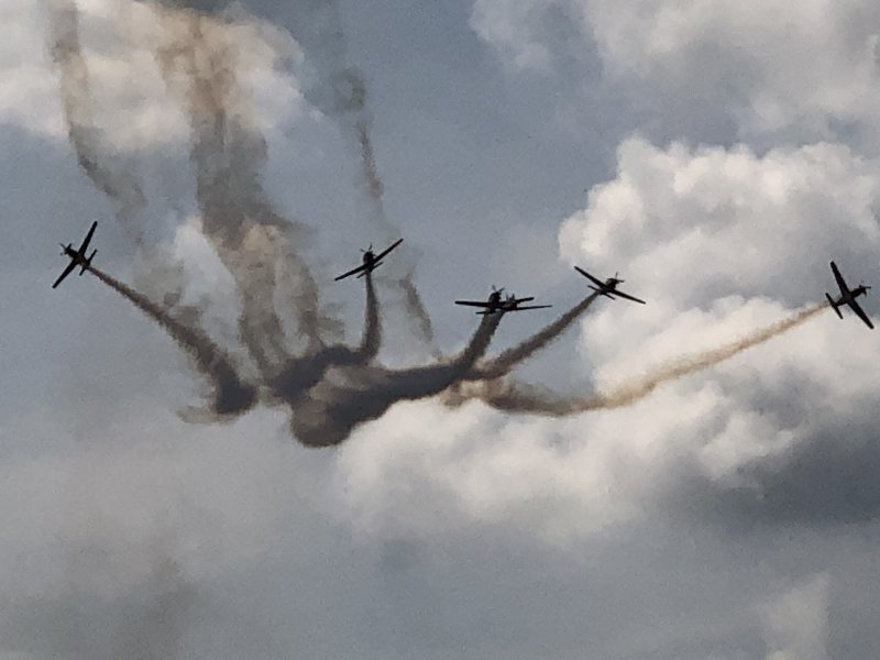 It’s a flying display like no other I’ve ever seen. The “Opening Gambit” as its referred to on day 1 is very spectacular. Multiple fighters from various directions firing IR flares setting the airfield on fire ! See video below for black patches.