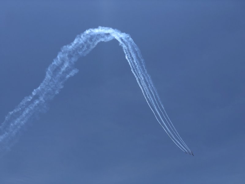 Crowd rear arrivals pulling vertical in front of you, all you get is topside view. Flight towards breaking off to exit the area 45’ at show crowd ends and then to cap it all a B52 from Diego Garcia (4,200nm round trip) down the crowd line at 230 meters away, right to left then 270’ turn to pass overhead at 500ft streaming black smoke from its 8 engines.